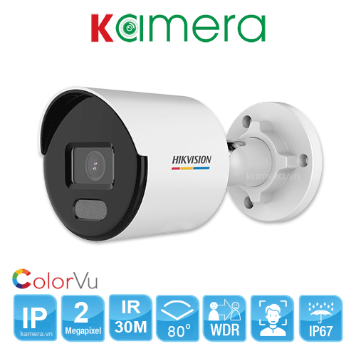 CAMERA IP HIKVISION DS-2CD1027G2-L là dòng camera ColorVu mới 2023 của hãng HIKIVISION hỗ trợ hồng ngoại ban đêm có màu 24/7, Độ phân giải: 2.0 Megapixel. Chuẩn nén hình ảnh: H.265+ tiết kiệm dung lượng lưu trữ, Đèn ánh sáng trắng chiếu sáng lên đến 30 mét. Hỗ trợ chức năng chống ngược sáng Digital WDR. Tính năng nhận dạng con người.