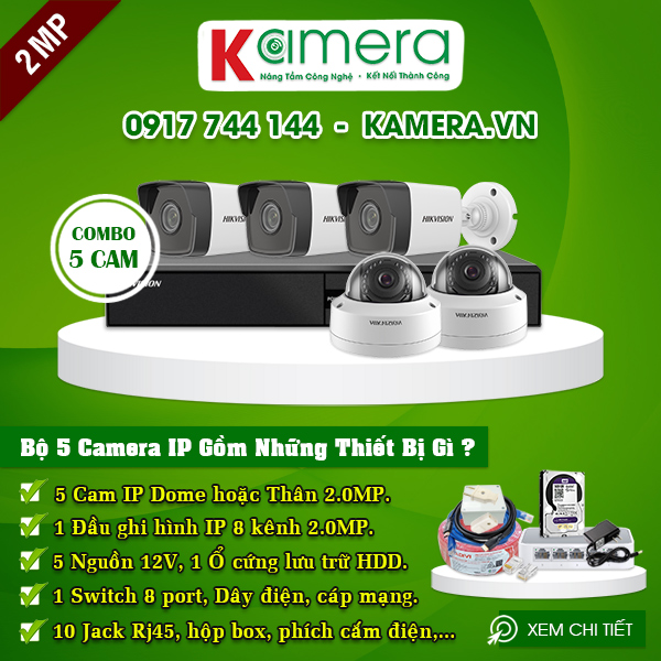 1.Trọn bộ 05 camera IP HIKVISION 1080P (2.0MP)