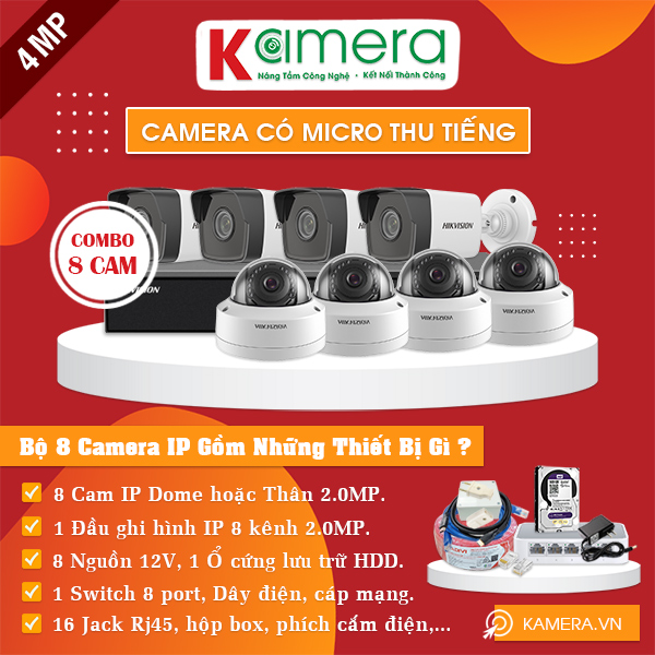 TRỌN BỘ 8 CAMERA IP HIKVISION 4MP